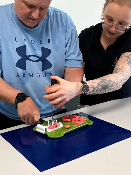 Mit der richtigen Unterstützung werden Alltagsaktivitäten wieder möglich: Anziehen, Kochen, Schreiben.